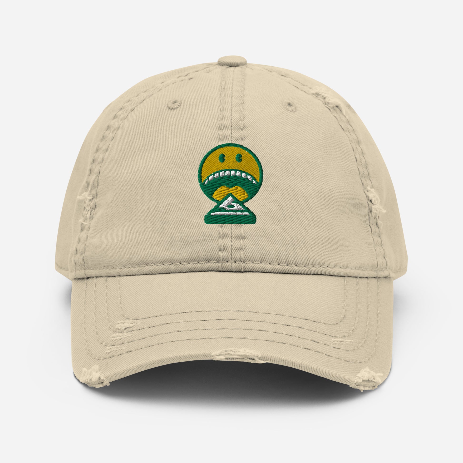 Expand your headwear collection with this fashionable dad hat. With a slightly distressed brim and crown fabric, it’ll add just the right amount of edge to your look. For a quick and easy outfit pair it with slacks, your favorite jeans, and a sports tee.
